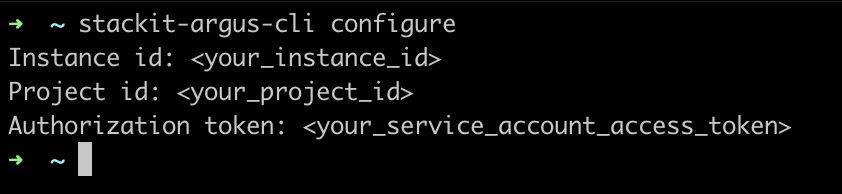 After that configuration file(.stackit-observability-cli.yaml) will be generated in your $HOME directory. You can change the configurations in the file directly or by running configure command again. The file also contains a base URL of an API call, that is stated to the default value. In order to change it you should set it up in the configuration file directly.