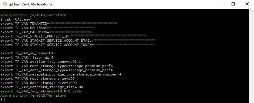 If you are not using a bash shell, but another tool, the variables from the.envmust be adjusted or set directly in the Terraform files.