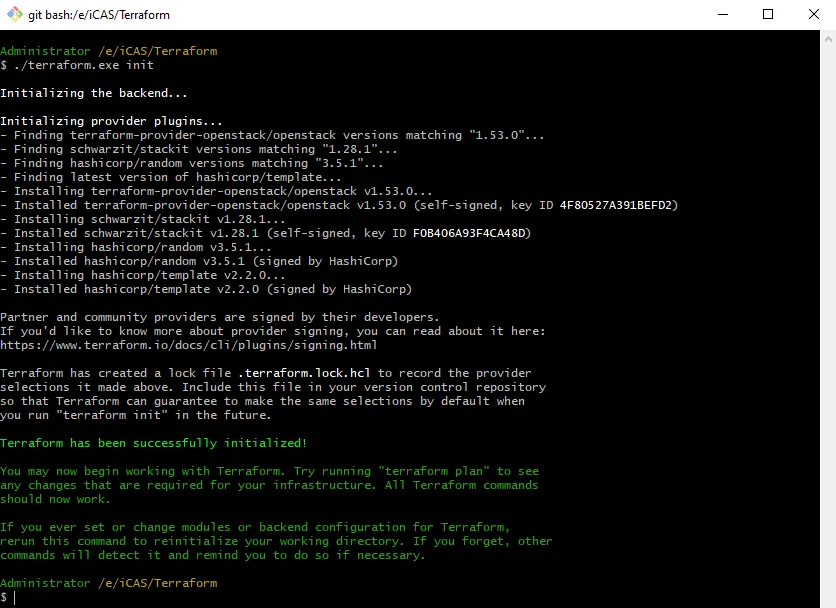 Once the deployment has been started, the iCAS Server is provided, installed and configured completely automatically. As soon as the Terraform output reports successful deployment, you can connect to the server via the web console in the STACKIT portal, for example. In the first step, the server is deployed and some downstream settings are made. The completion of this step is indicated by a message box in the web console.