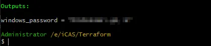 Section titled “Windows login”To log in to the Windows server, the local user admin should be used. The associated password is generated randomly and displayed in the Terraform output.